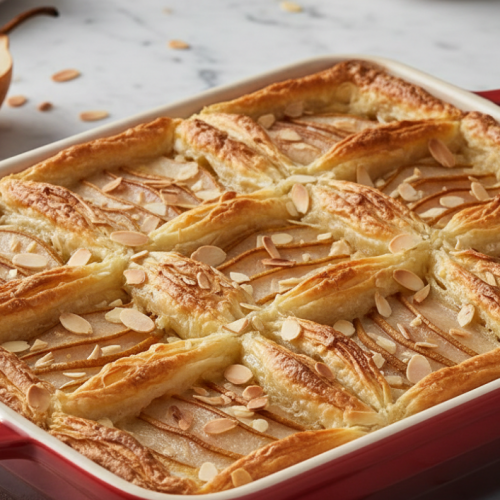 Nota: Sirva esta tarte morna. A temperatura ambiente permite que os sabores da manteiga e da amêndoa se pronunciem, e o som da massa a quebrar é mais audível. A Tarte de Pêra e Amêndoa com técnica crinkle é a prova de que a sofisticação na cozinha depende mais da compreensão do comportamento dos materiais do que da complexidade dos ingredientes. Ao investir numa travessa de cerâmica de qualidade e respeitar os tempos de cozedura, o resultado é uma sobremesa de estética impecável e textura audível. Partilhe connosco a sua versão! Já experimentou usar maçã em vez de pêra para um toque de acidez extra?